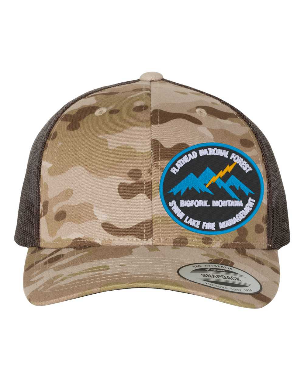 YP Classics - Retro Trucker Cap - with embroidered patch on the left panel of the hat.