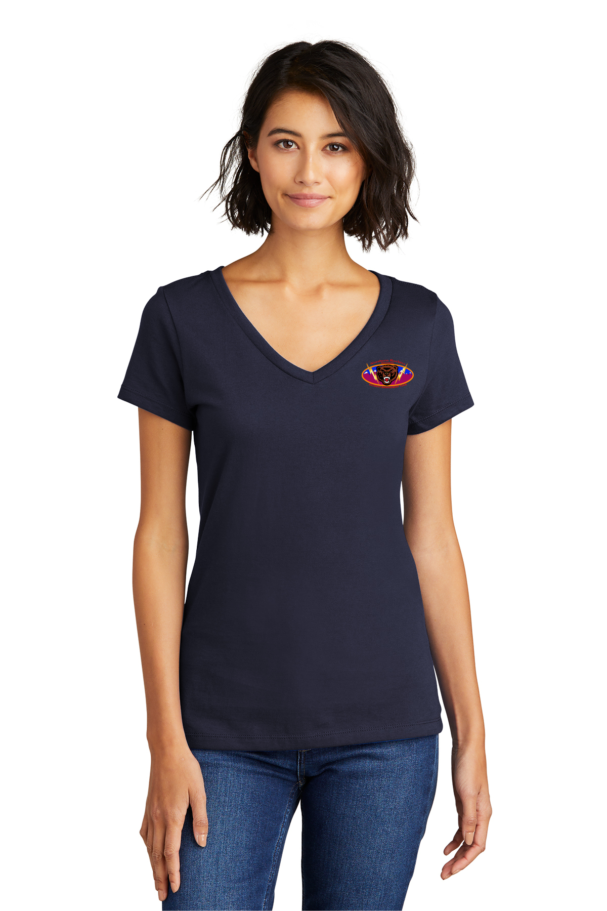 Ladies District DT6503 V-Neck Short Sleeve T-shirt embroidered with logo.