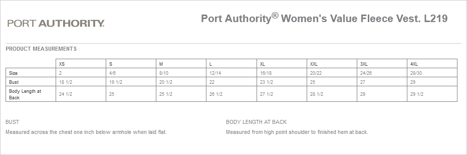 Ladies Port Authority® Value Fleece Vest L219 embroidered with logo.