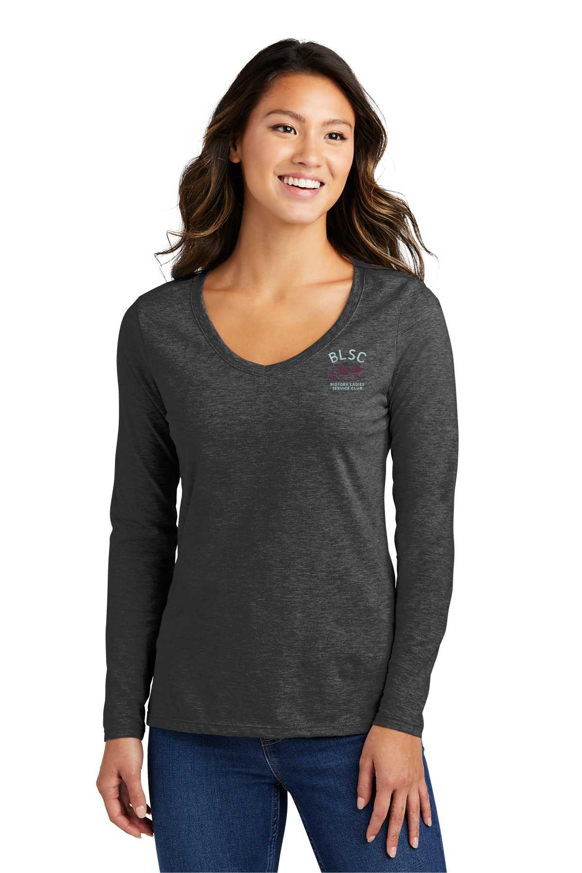 This soft ringspun ladies V-neck T-shirt is available in sizes XSmall through 4XLarge. Printed with the BLSC Logo on the Left chest and back.